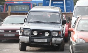 The vehicle was spotted by surprised motorists – who could only see the top of the child’s head – driving at low speed in the high-powered Mitsubishi Shogun automatic.