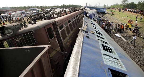 Early on Friday morning, the Mumbai-bound Jnaneshwari Express derailed at Jhagram in West Bengal‘s West Midnapore district, a Maoist stronghold. A few minutes later, a speeding freight trainunning in the opposite direction hit carriages of the derailed train that had fallen on the parallel track.