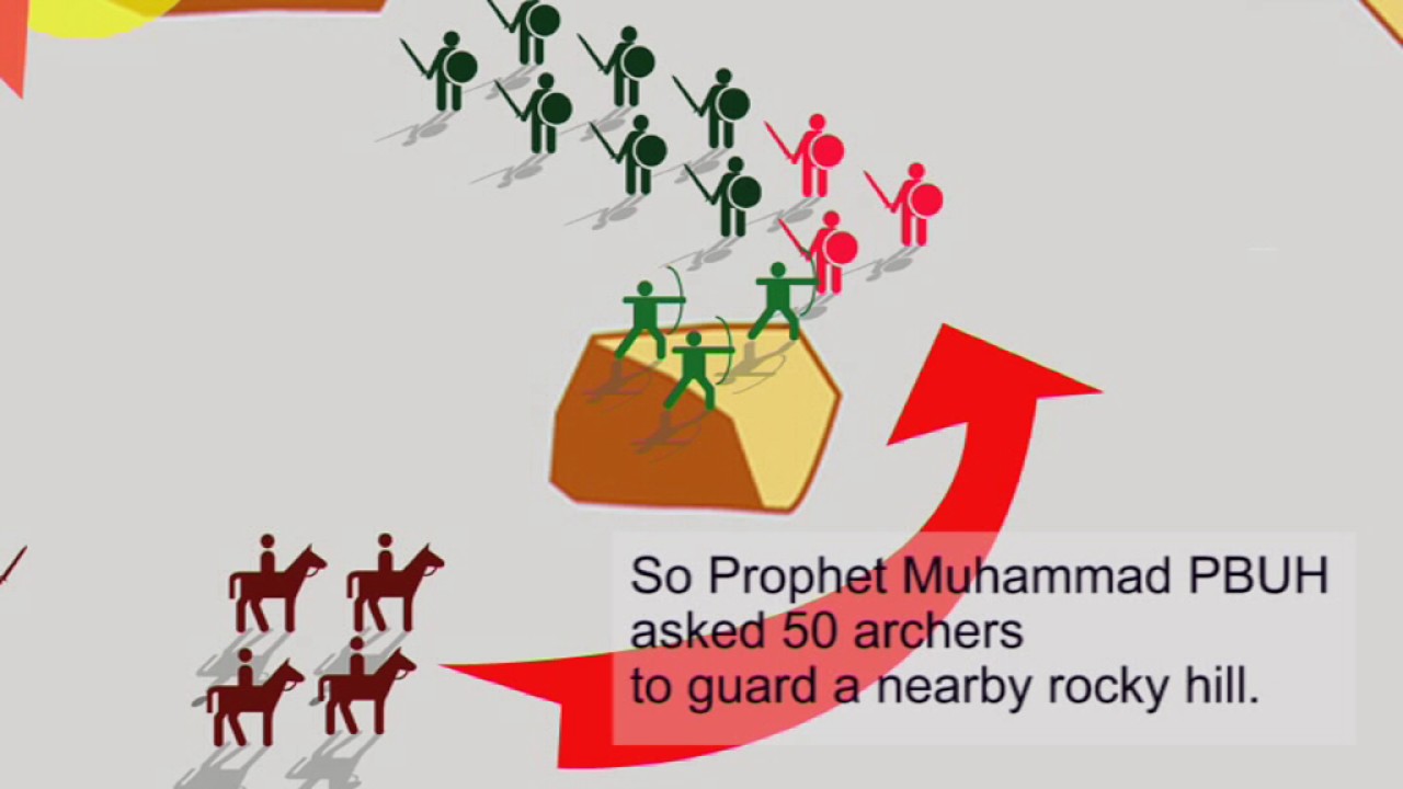 In the Battle of Uhud, The Prophet placed a group of archers on a nearby hill to give protection to the back of the Muslim army with specific instructions not to leave their posts under any circumstances. As the battle turned in favour of the Muslim army, the archers left their positions from the hill. Khalid ibn AI-Waleed took advantage of this and led the Meccan fighters with him around the hill to attack the Muslim army from the rear, where they least expected their enemy – and the loss on the part of the Muslims became a great one.