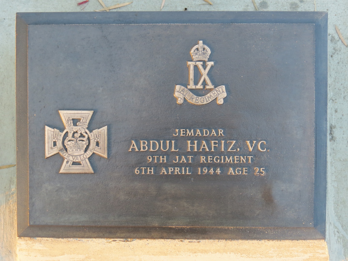 Jemadar Abdul Hafiz was killed during his VC action and was buried in the Imphal Indian Army War Cemetery, Manipur State.
