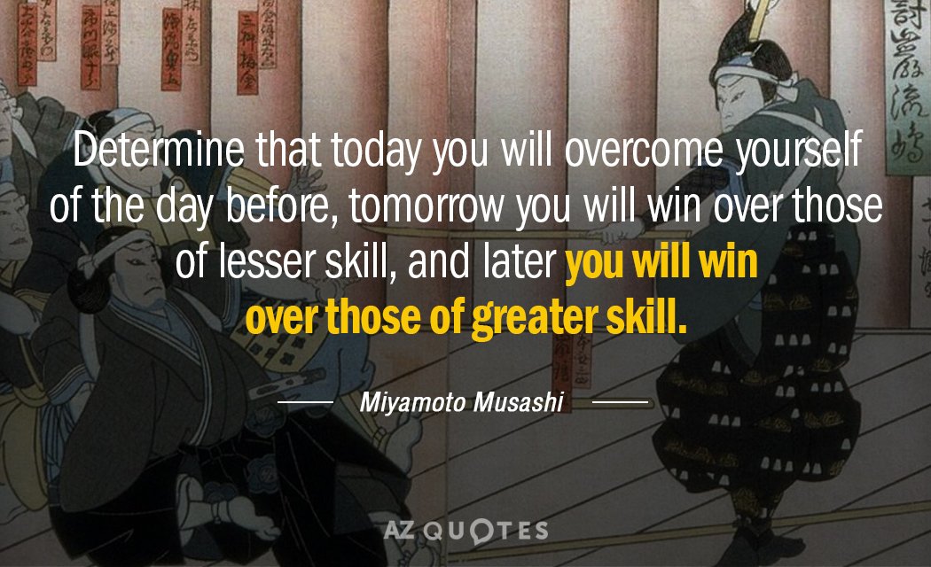 “Determine that today you will overcome yourself of the day before, tomorrow you will win over those of lesser skill, and later you will win over those of greater skill.”