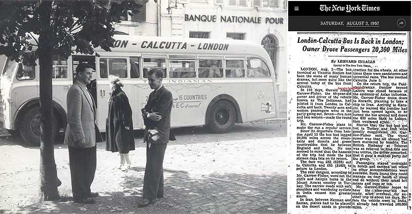 “The Indiaman” Garrow-Fisher Tours was based in London. This left Victoria Coach Station on 15 April 1957 and returned after a 20,000-mile (32,000 km) journey to Calcutta on 2 August.