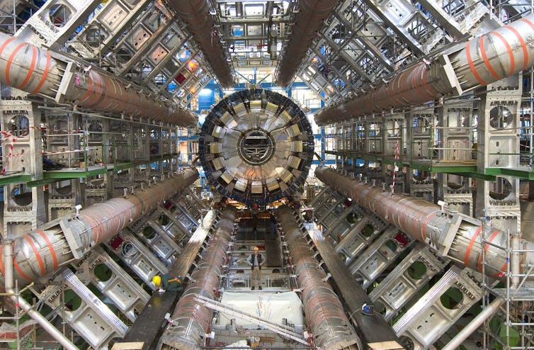 The Standard Model is a predictive framework that does two things. First, it explains what the basic particles of matter are. These are things like electrons and the quarks that make up protons and neutrons. Second, it predicts how these matter particles interact with each other using “messenger particles.” These are called bosons – they include photons and the famous Higgs boson – and they communicate the basic forces of nature. The Higgs boson wasn’t discovered until 2012 after decades of work at CERN, the huge particle collider in Europe.