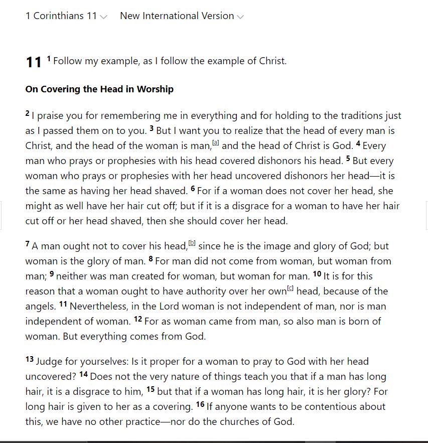 “No, not the Quran. It is 1 Corinthians 11:7-11:11 in The Bible.